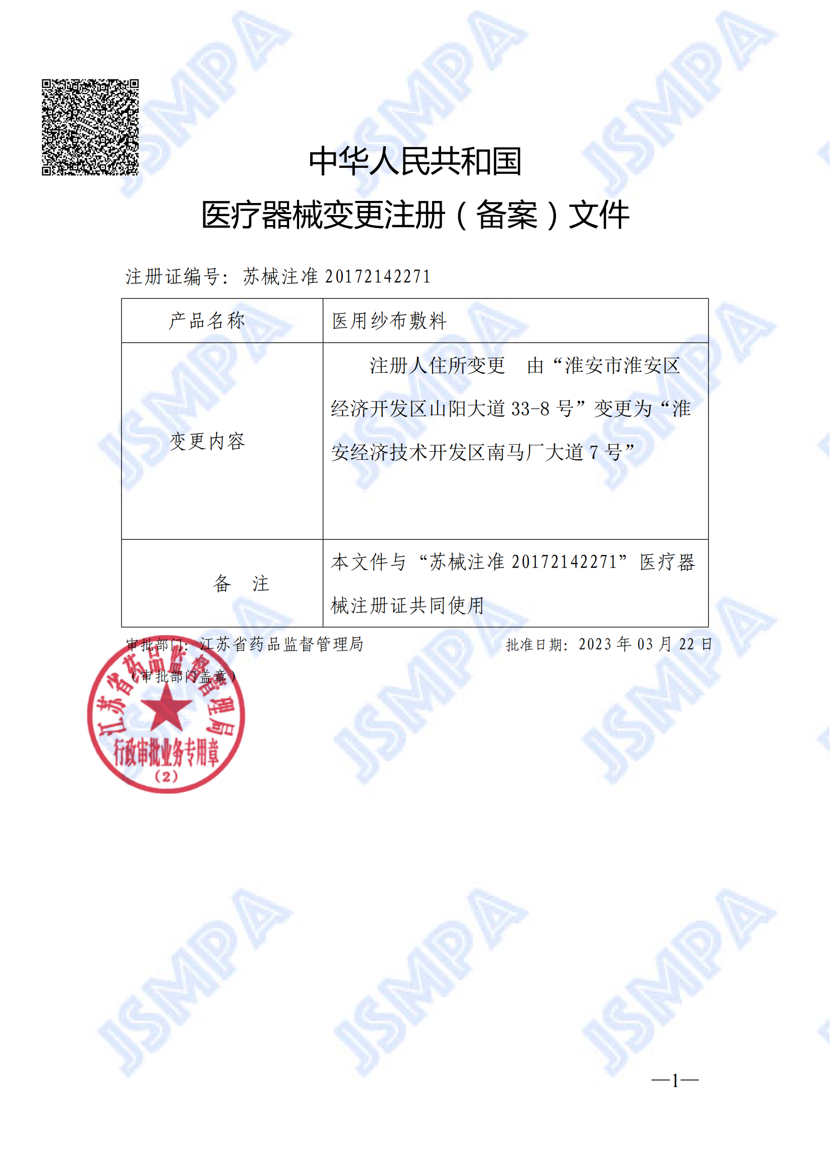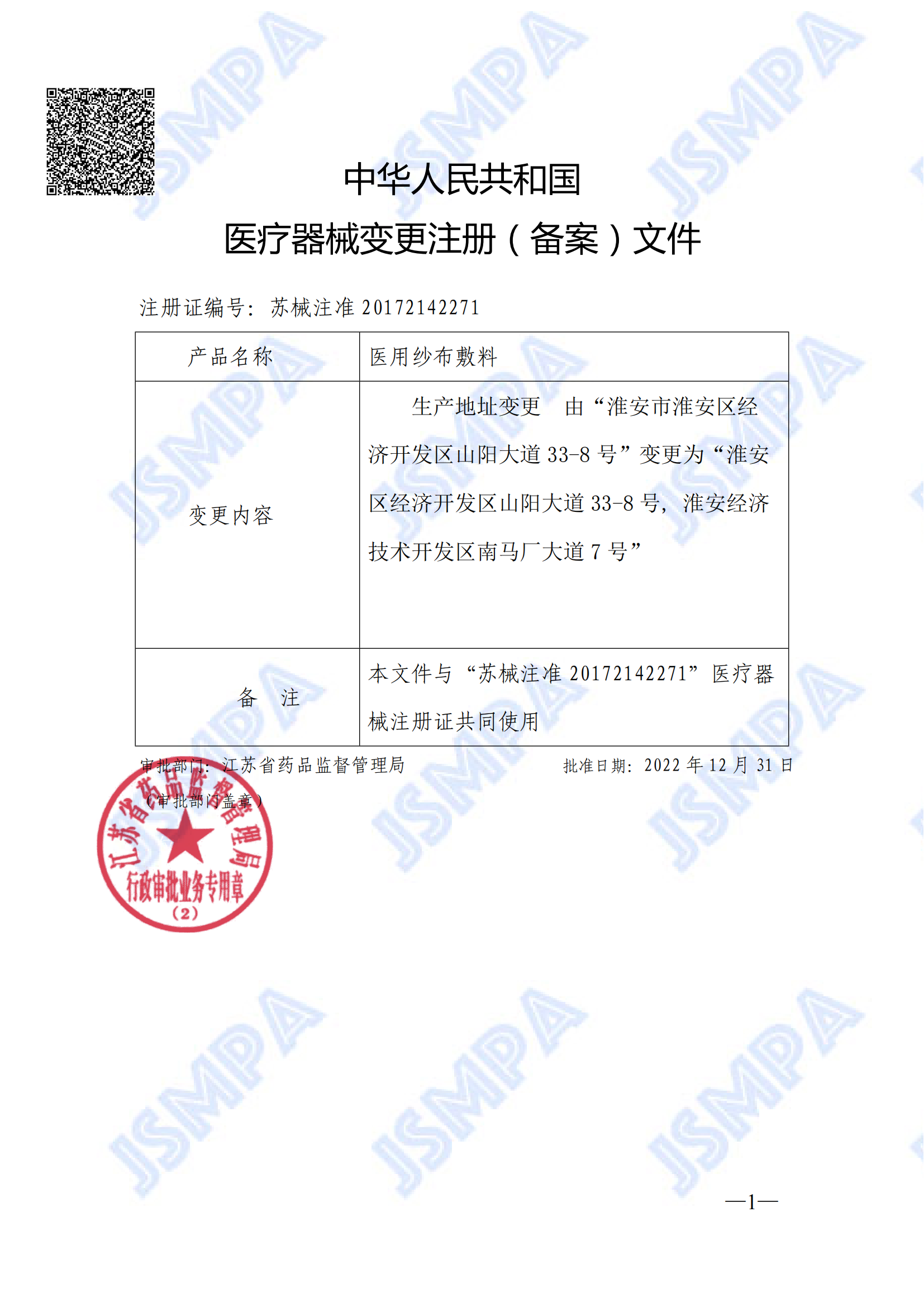 醫(yī)療器械注冊(cè)證(醫(yī)用紗布敷料注冊(cè)證)