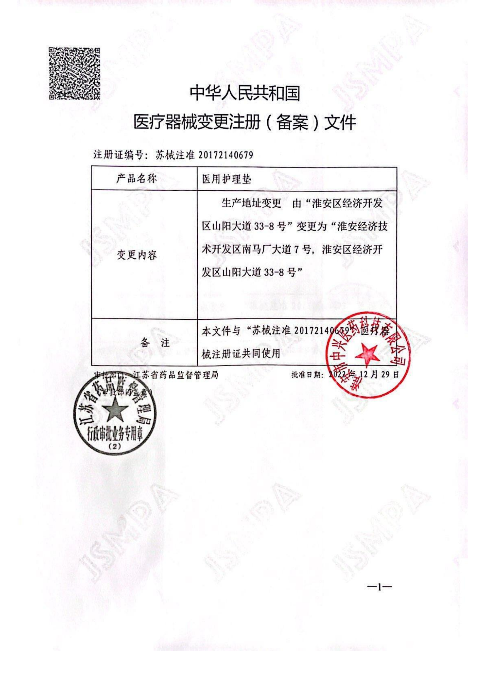 醫(yī)療器械注冊(cè)證(醫(yī)用護(hù)理墊)